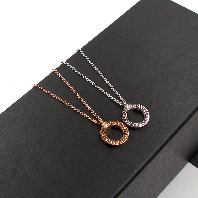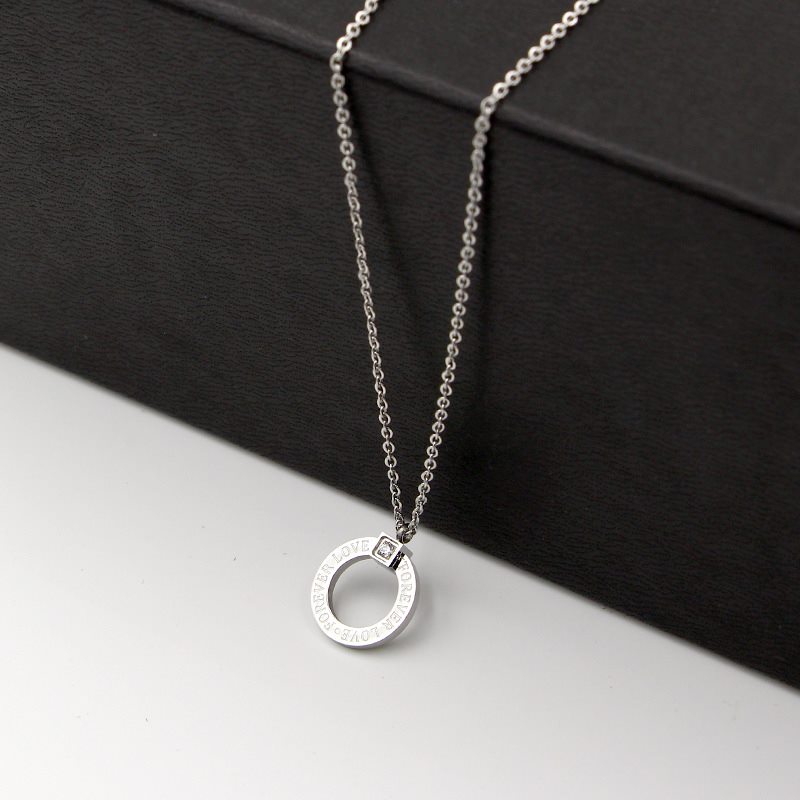 Elegante y sofisticado, este collar presenta un dije en forma de círculo con una sutil inscripción y una hermosa zirconia incrustada, aportando un brillo delicado. Disponible en tres acabados: dorado, oro rosa y plateado, está elaborado en acero inoxidable de alta calidad, resistente al desgaste y a la corrosión. Su diseño moderno y minimalista lo convierte en un accesorio versátil, ideal para uso diario o como un regalo especial que simboliza la eternidad y el amor.