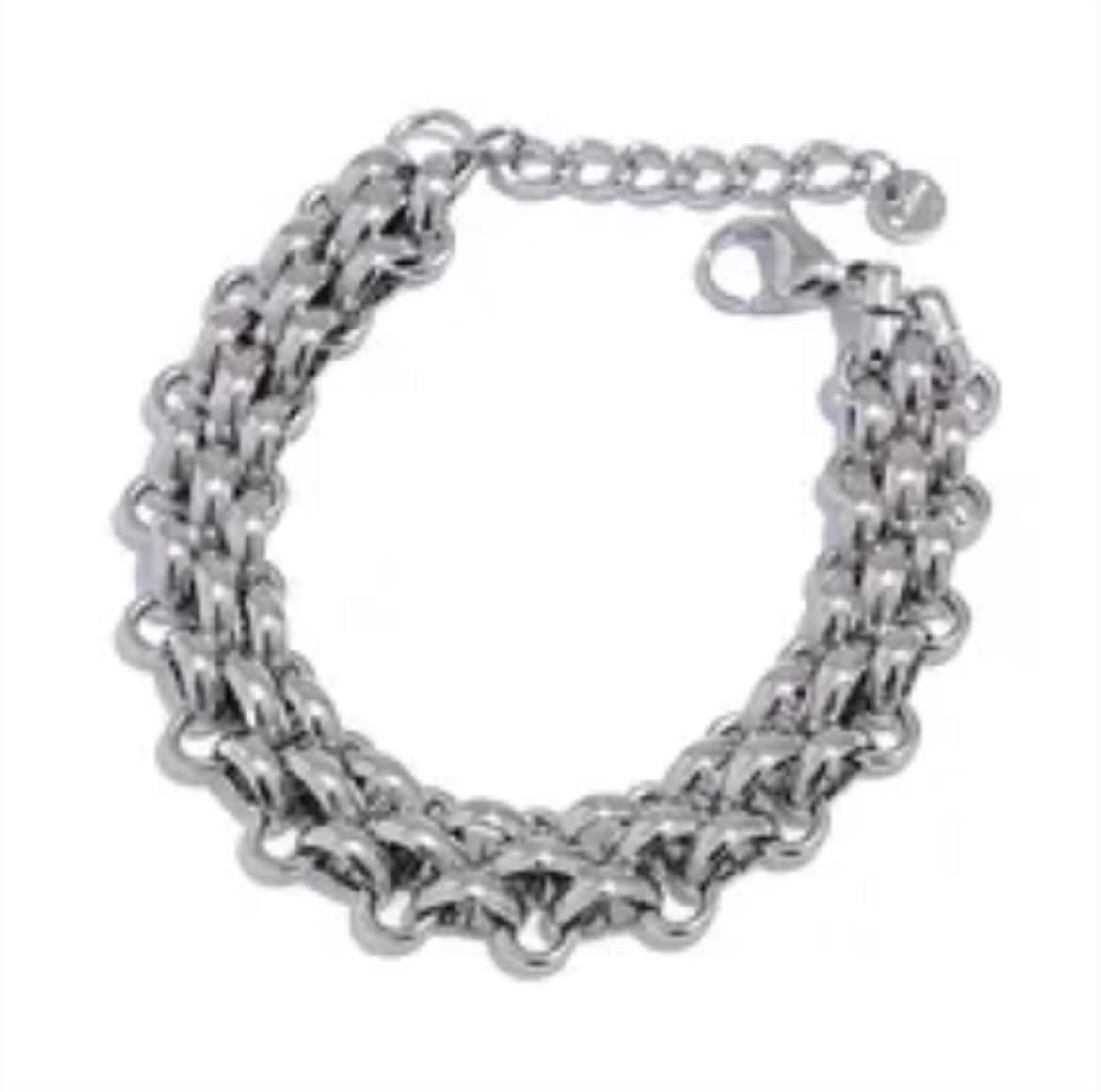 Esta pulsera de eslabones dobles ofrece un diseño robusto y moderno, ideal para quienes buscan una pieza llamativa y elegante a la vez. Su estructura de cadenas entrelazadas proporciona volumen y textura, mientras que el cierre de langosta y la extensión ajustable garantizan un ajuste cómodo. Perfecta para llevar sola o acompañada de otras pulseras para un look más audaz.